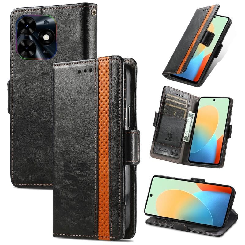 Για Tecno Pop 8 4G CaseNeo Splicing Διπλή μαγνητική πόρπη δερμάτινη θήκη τηλεφώνου (μαύρο)