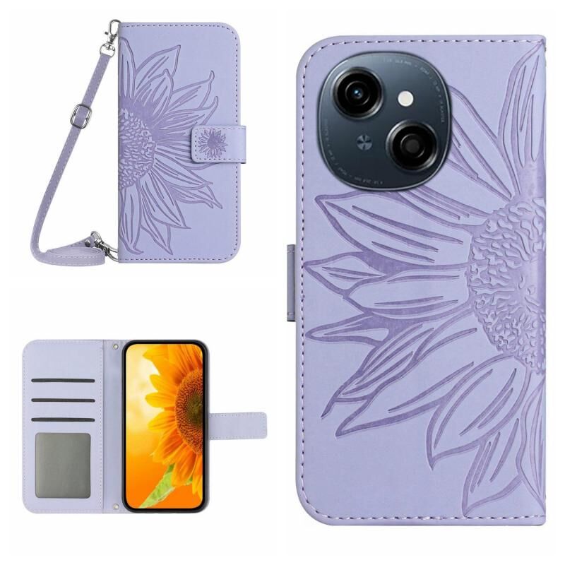 For Tecno Pop 9 4G / Spark Go 2025 4G Skin Feel Sun Flower Embossed Flip Leather Phone Case with Lanyard(Purple)