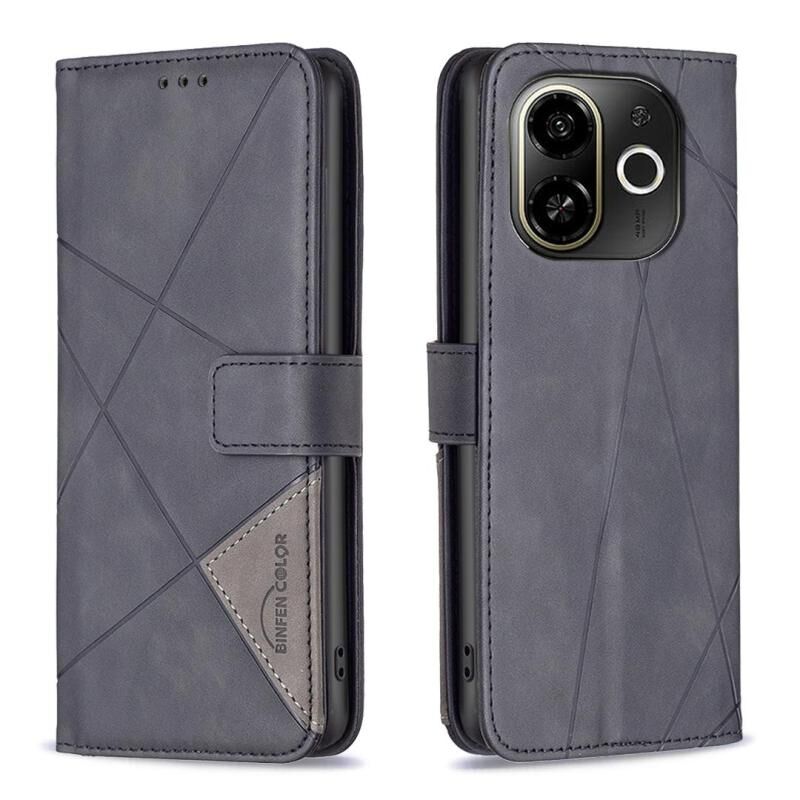 Για Tecno POP 9 5G / Spark 30C 5G Μαγνητική πόρπη Rhombus υφή δερμάτινη θήκη τηλεφώνου (μαύρο)