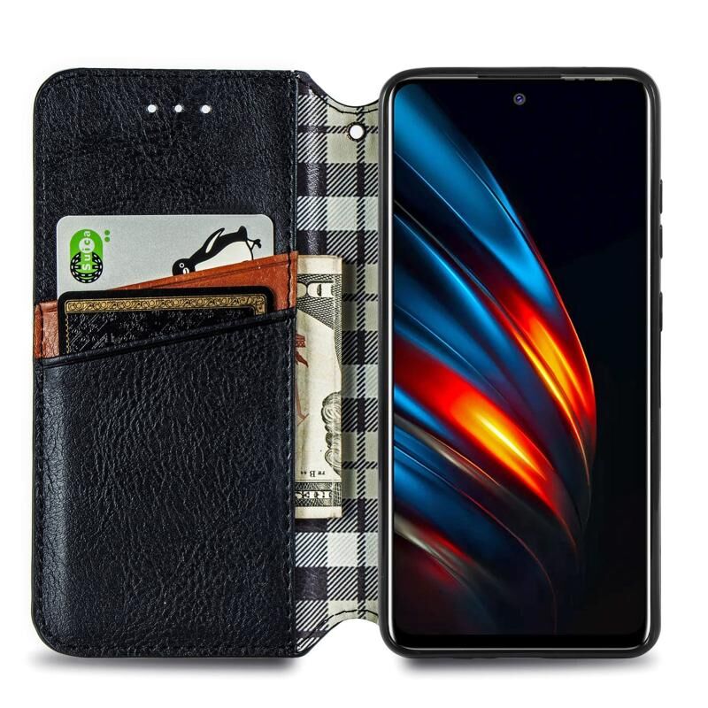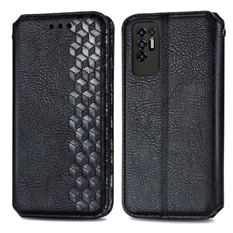 Για Tecno Pova 2 Cubic Grid Πιεστεί οριζόντια Flip μαγνητική δερμάτινη θήκη τηλεφώνου με κάτοχο & υποδοχές καρτών & πορτοφόλι (μαύρο)