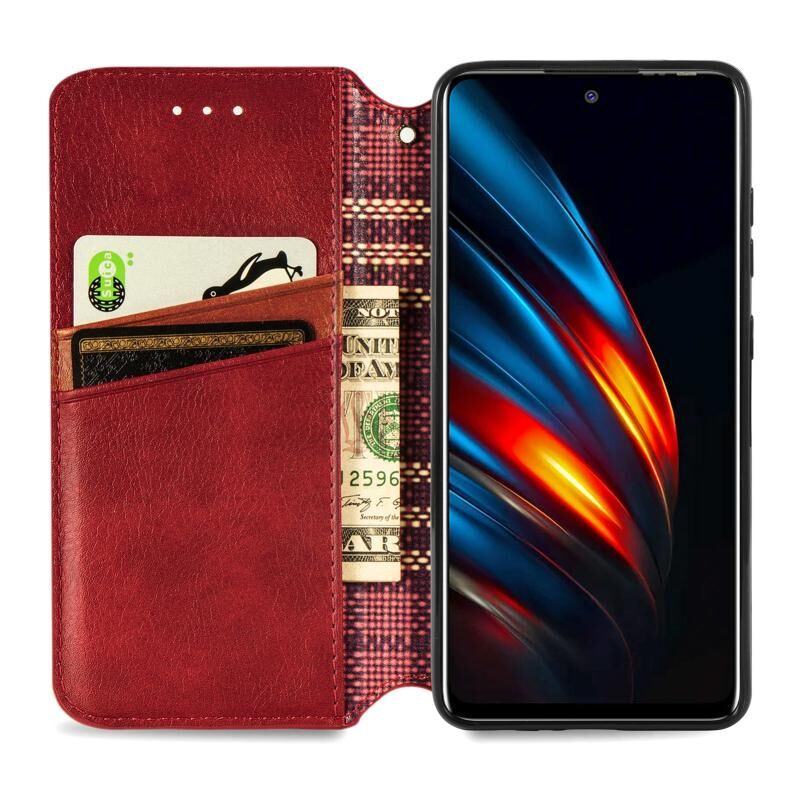 Για Tecno Pova 2 Cubic Grid Πιεσμένο οριζόντια Flip μαγνητική δερμάτινη θήκη τηλεφώνου με κάτοχο & υποδοχές καρτών & πορτοφόλι (κόκκινο)