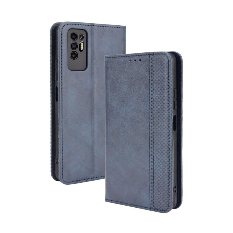 Για Tecno Pova 2 Μαγνητική πόρπη Retro Crazy Horse Υφή οριζόντια Flip δερμάτινη θήκη με κάτοχο & υποδοχές καρτών & πλαίσιο φωτογραφιών (μπλε)
