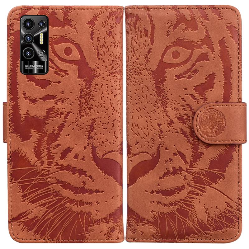 Θήκη τηλεφώνου από δέρμα με οριζόντιο άνοιγμα για Tecno Pova 2 με ανάγλυφο σχέδιο τίγρης (Ροζ)