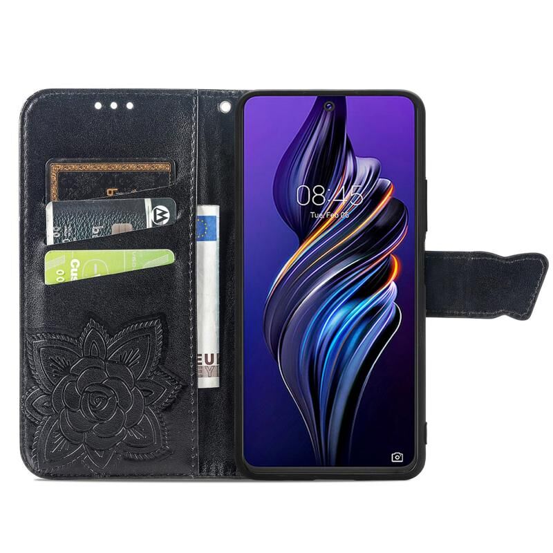 Θήκη τηλεφώνου Tecno Pova 3 Butterfly Love Flower Embossed Leather (Χρυσό Ρόδι)