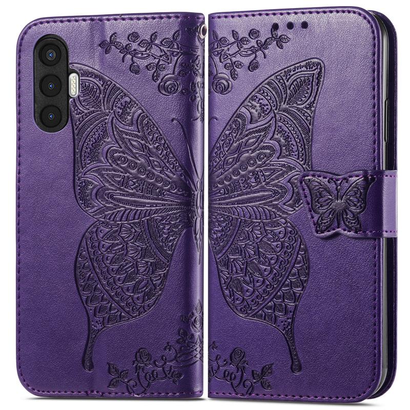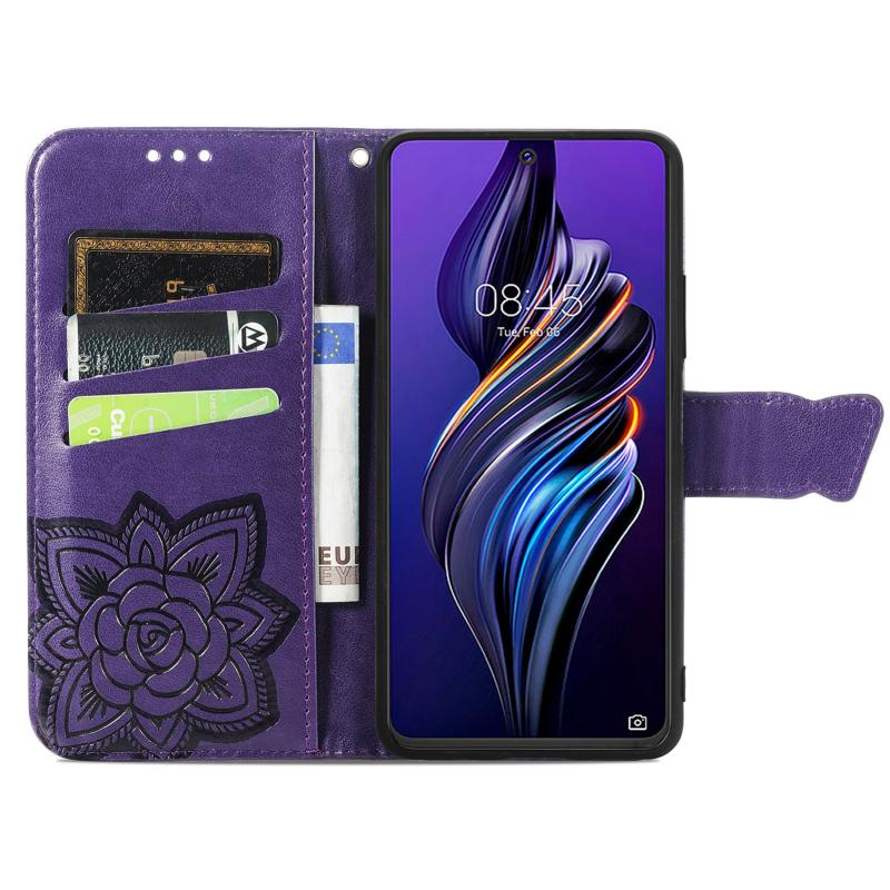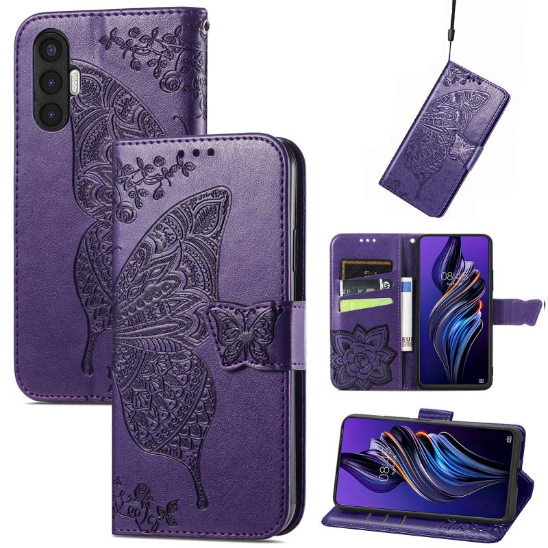 For Tecno Pova 3 Butterfly Love Flower Embossed Leather Phone Case(Purple)