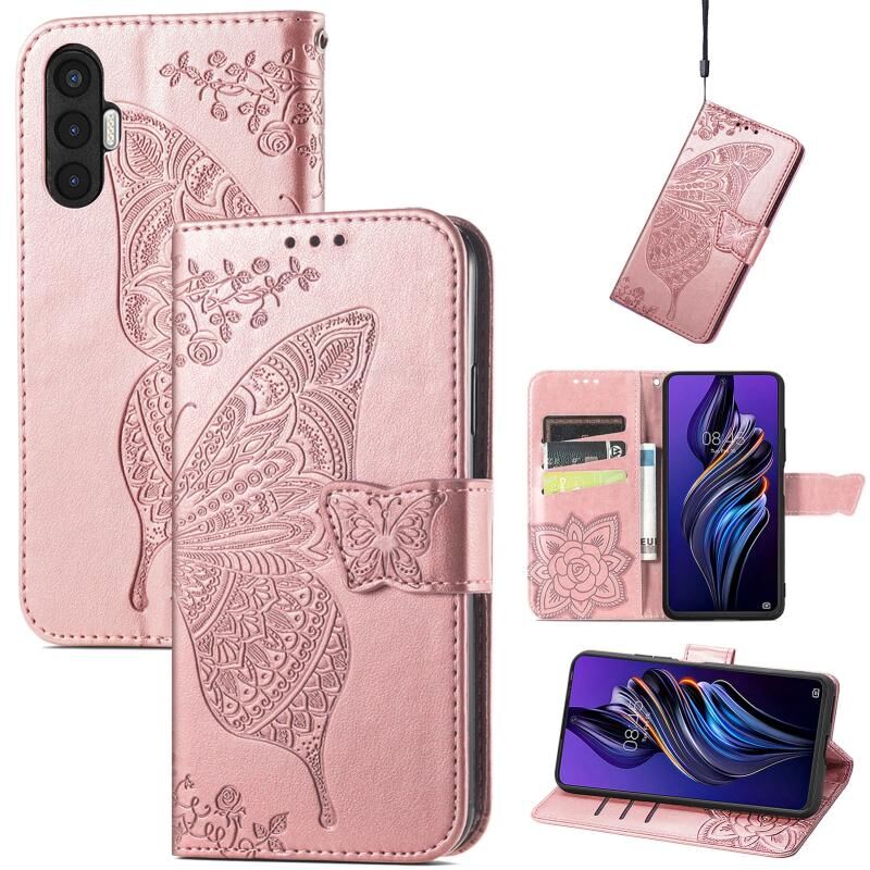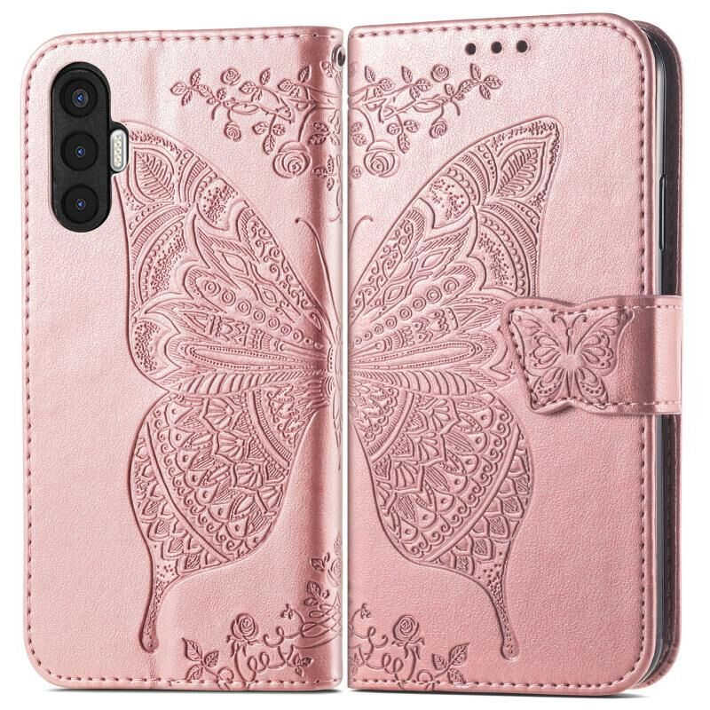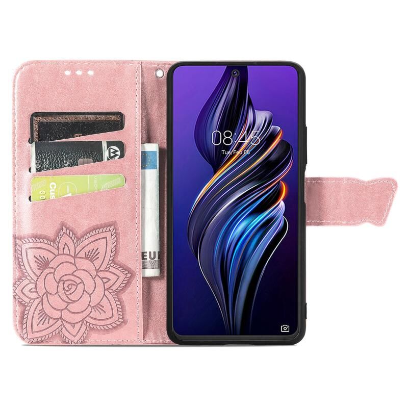 Θήκη τηλεφώνου Tecno Pova 3 Butterfly Love Flower Embossed Leather (Χρυσό Ρόδι)