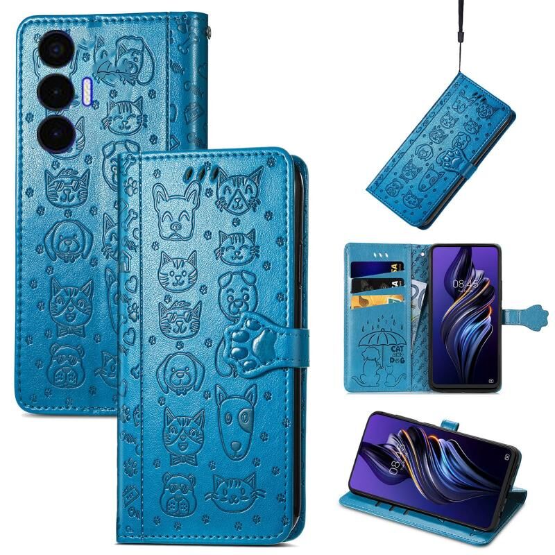 Θήκη τηλεφώνου από δέρμα με ανάγλυφο σχέδιο γάτας και σκύλου για Tecno Pova 3 (Μπλε)