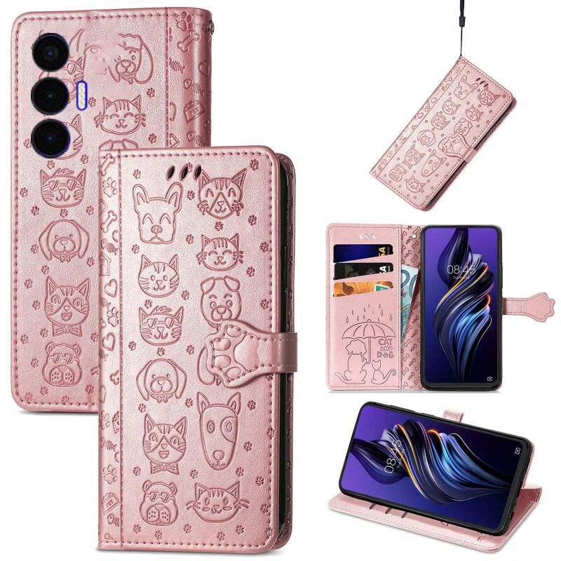 Θήκη τηλεφώνου από δέρμα με ανάγλυφο σχέδιο γάτας και σκύλου για Tecno Pova 3 (Μπλε)