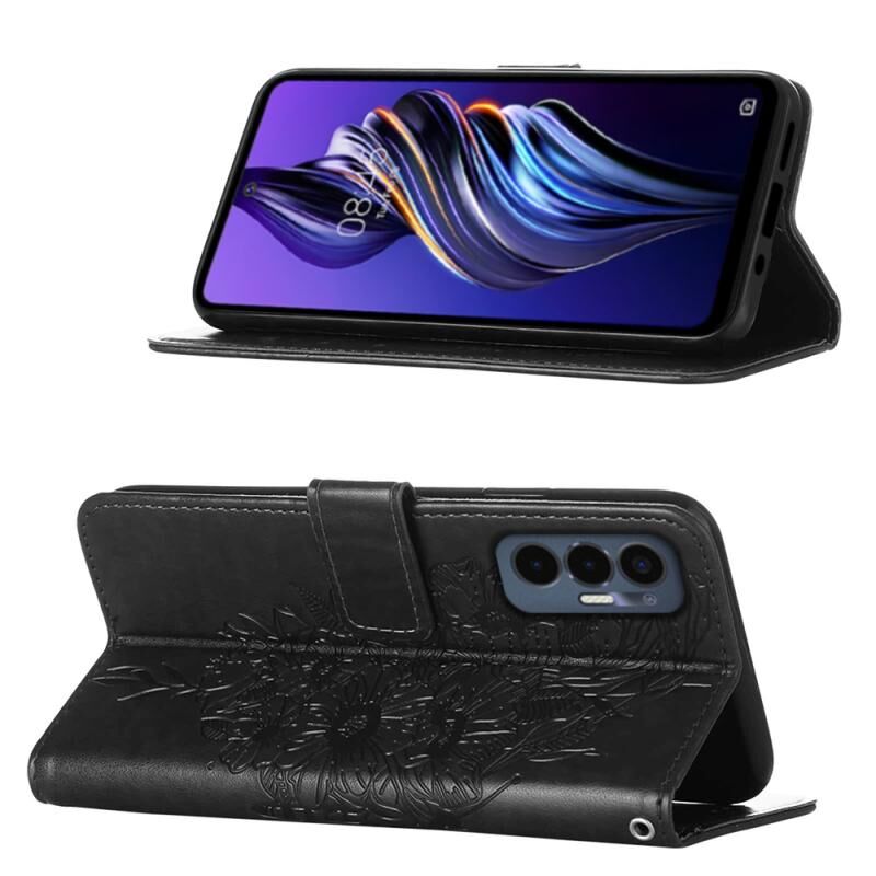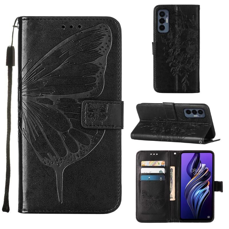 Θήκη τηλεφώνου Tecno Pova 3/LE7 από δέρμα με ανάγλυφο σχέδιο πεταλούδας (Μπλε)