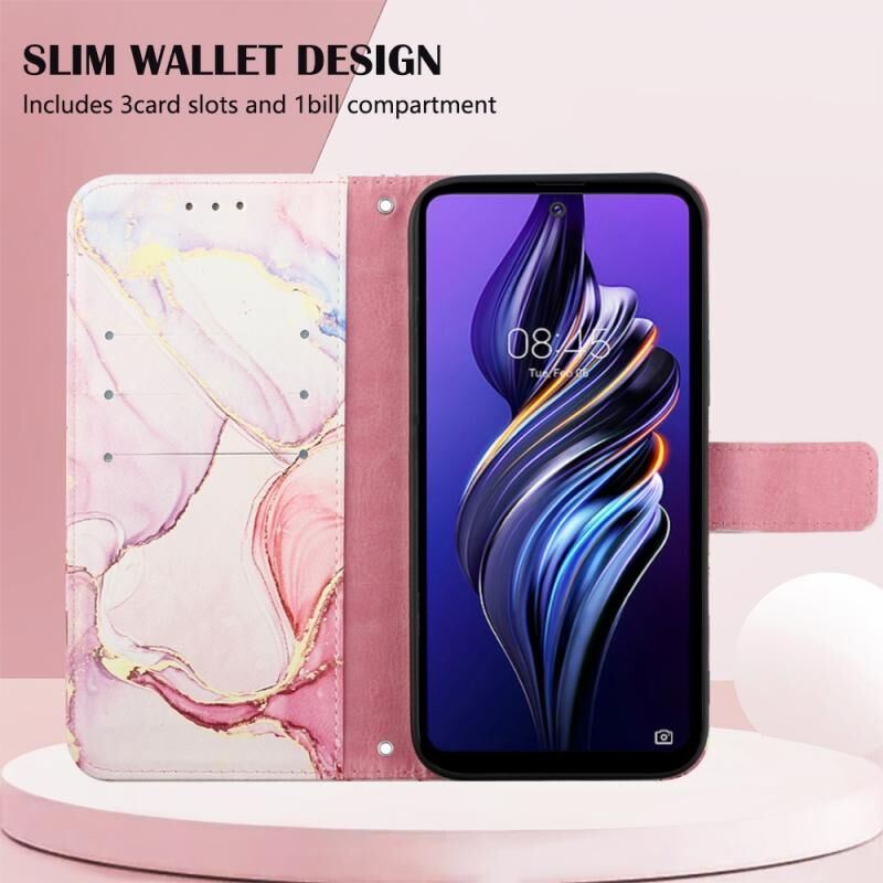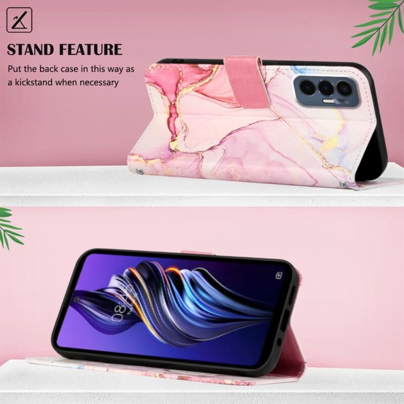 Θήκη τηλεφώνου από δέρμα με σχέδιο μάρμαρου για Tecno Pova 3 LE7 PT003 (Ροζ, Μωβ, Χρυσό)