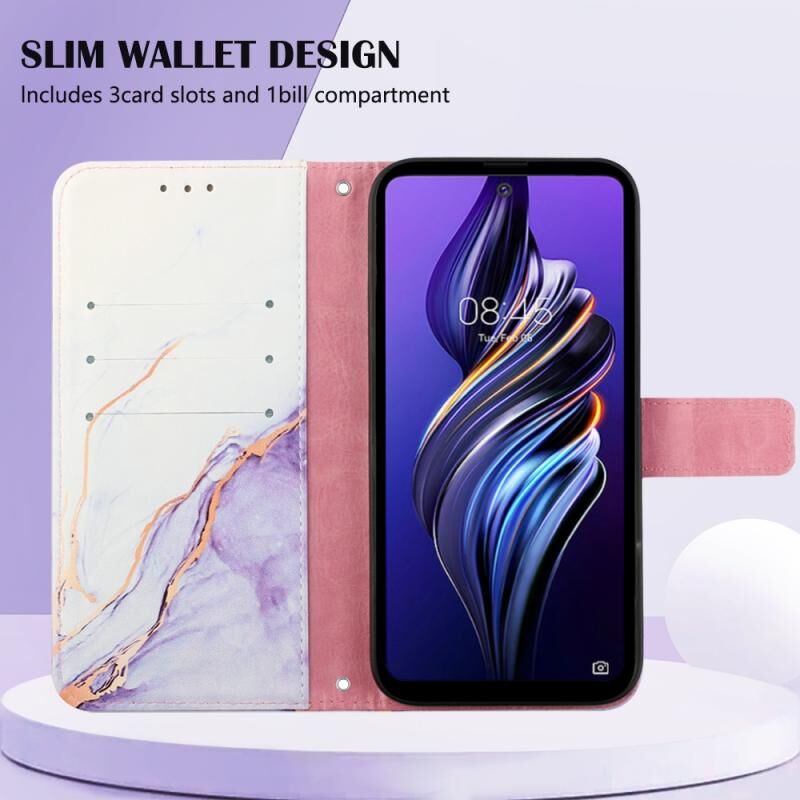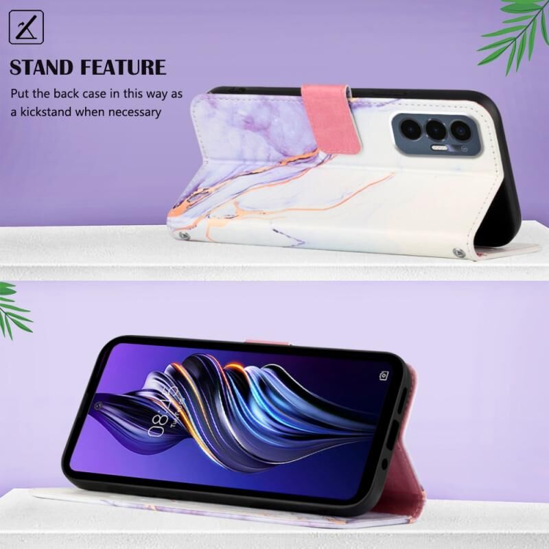 Θήκη τηλεφώνου από δέρμα με σχέδιο μάρμαρου για Tecno Pova 3 LE7 PT003 (Ροζ, Μωβ, Χρυσό)