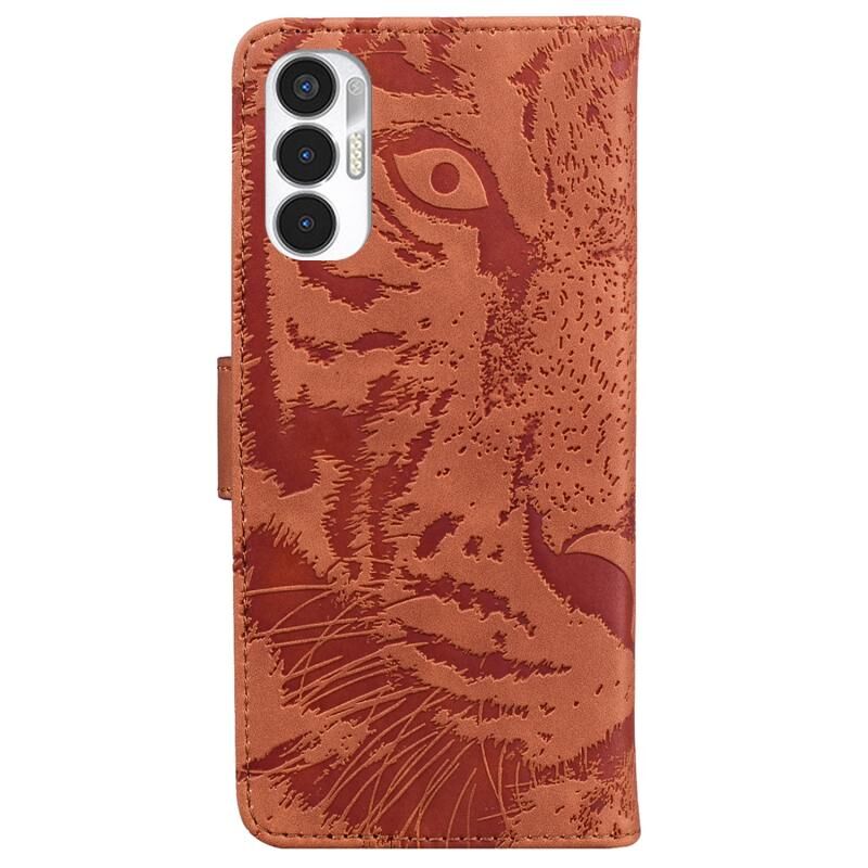 Θήκη τηλεφώνου Tecno Pova 3 LE7 με ανάγλυφο σχέδιο τίγρης, οριζόντια, δερμάτινη (Μαύρη)