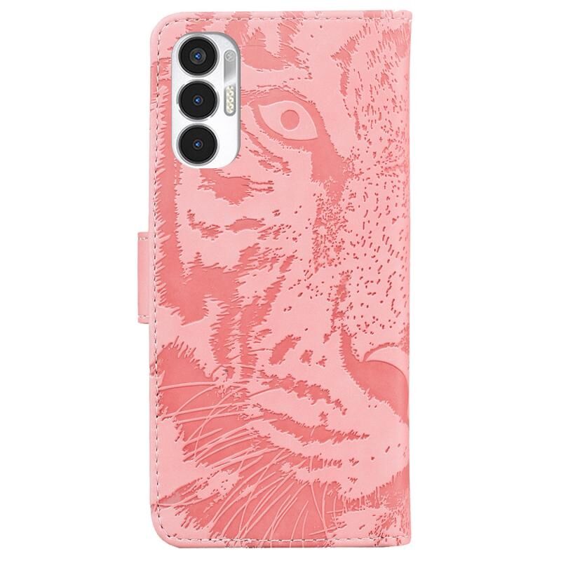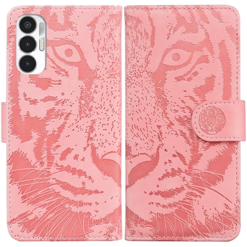 Θήκη τηλεφώνου Tecno Pova 3 LE7 με ανάγλυφο σχέδιο τίγρης, οριζόντια, δερμάτινη (Μαύρη)