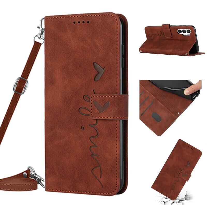 Για Tecno Pova 3 Skin Feel Heart Pattern δερμάτινη θήκη τηλεφώνου με κορδόνι (καφέ)