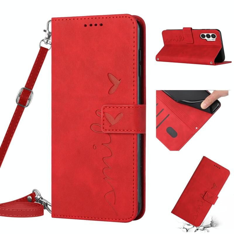 Για Tecno Pova 3 Skin Feel καρδιά μοτίβο δερμάτινη θήκη τηλεφώνου με κορδόνι (κόκκινο)