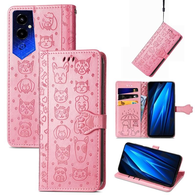 Θήκη τηλεφώνου από δέρμα με ανάγλυφο σχέδιο γάτας και σκύλου για Tecno Pova 4 4G (Μπλε)