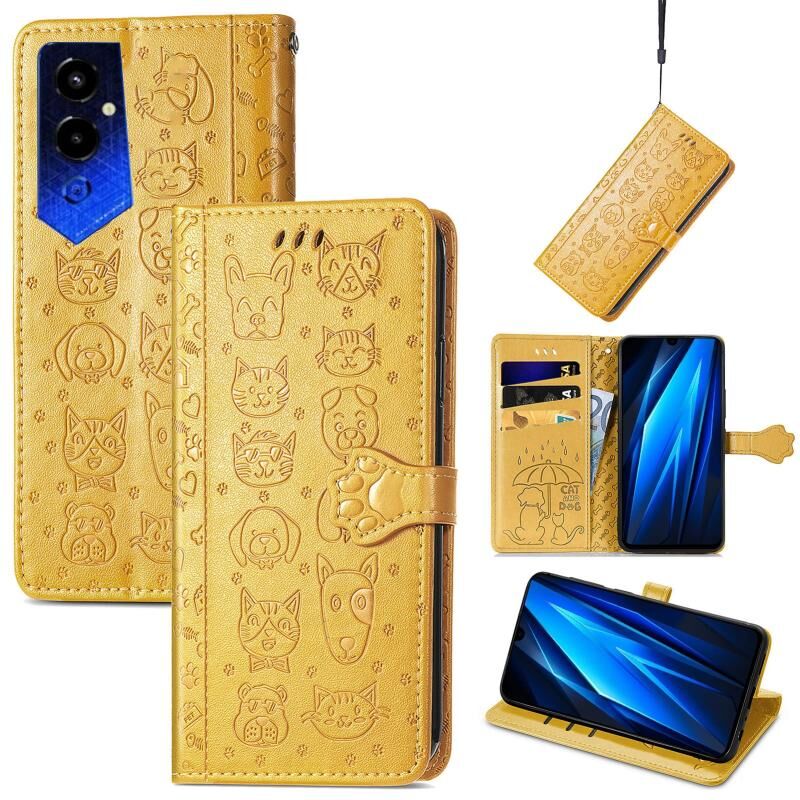 Θήκη τηλεφώνου από δέρμα με ανάγλυφο σχέδιο γάτας και σκύλου για Tecno Pova 4 4G (Μπλε)