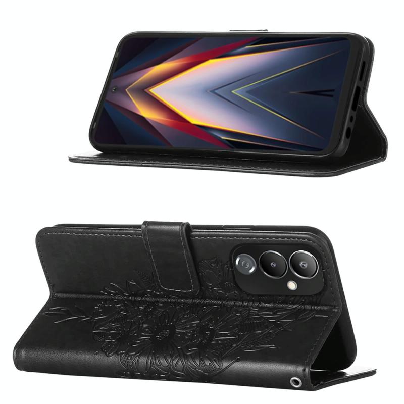 Θήκη τηλεφώνου Tecno Pova 4 LG7N από δέρμα με ανάγλυφο σχέδιο πεταλούδας και φλις (Πράσινο)
