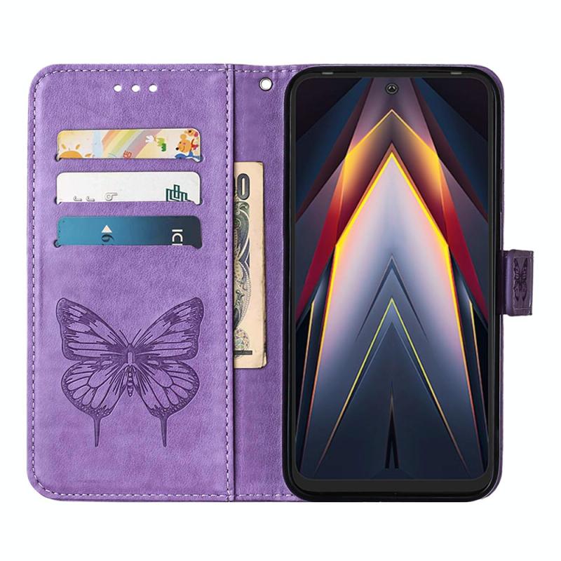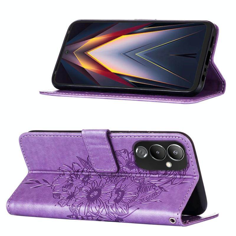 Θήκη τηλεφώνου Tecno Pova 4 LG7N από δέρμα με ανάγλυφο σχέδιο πεταλούδας και φλις (Γκρι)