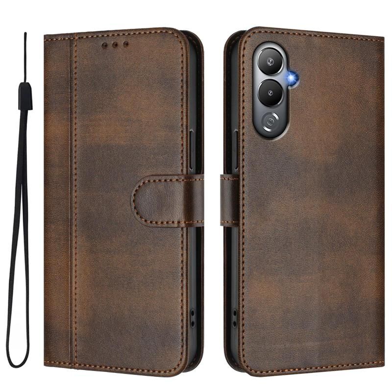 For Tecno Pova 4 Line Splicing Buckle Retro Leather Phone Case(Brown)