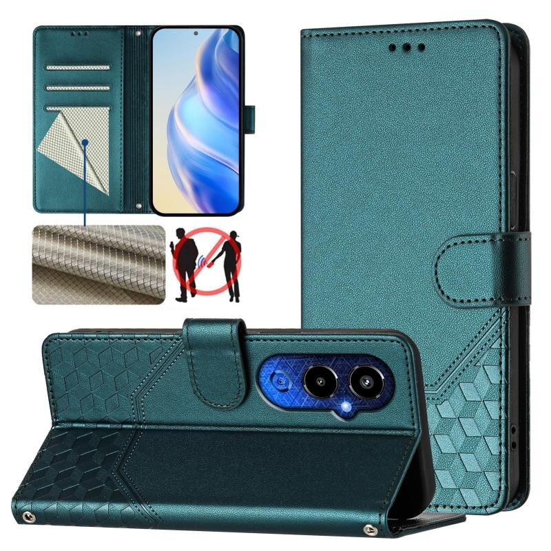 Για Tecno Pova 4 Pro 4G Honeycomb ανάγλυφη RFID δερμάτινη θήκη τηλεφώνου (Πράσινο παγώνι)