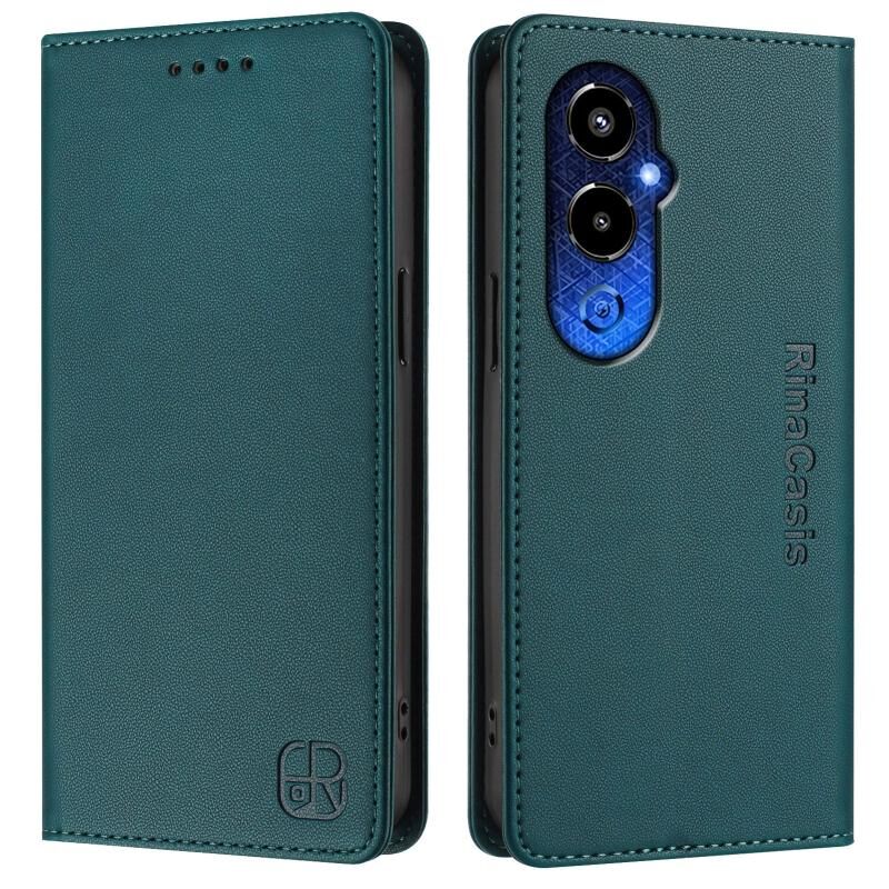 For Tecno Pova 4 Pro 4G RC01 Dual-Folded Magnetic Suction RFID Leather Phone Case(Dark Green)