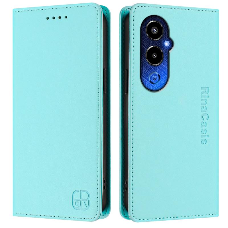 For Tecno Pova 4 Pro 4G RC01 Dual-Folded Magnetic Suction RFID Leather Phone Case(Mint Green)