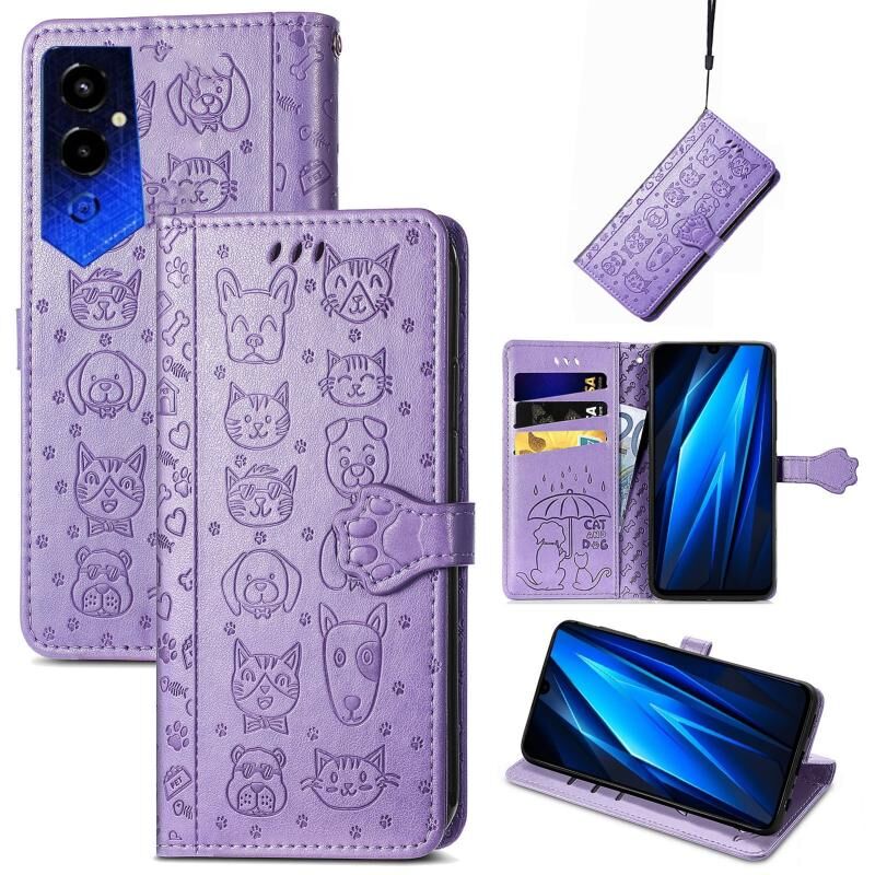 Θήκη τηλεφώνου από δέρμα με ανάγλυφο σχέδιο γάτας και σκύλου για Tecno Pova 4 Pro (Μπλε)