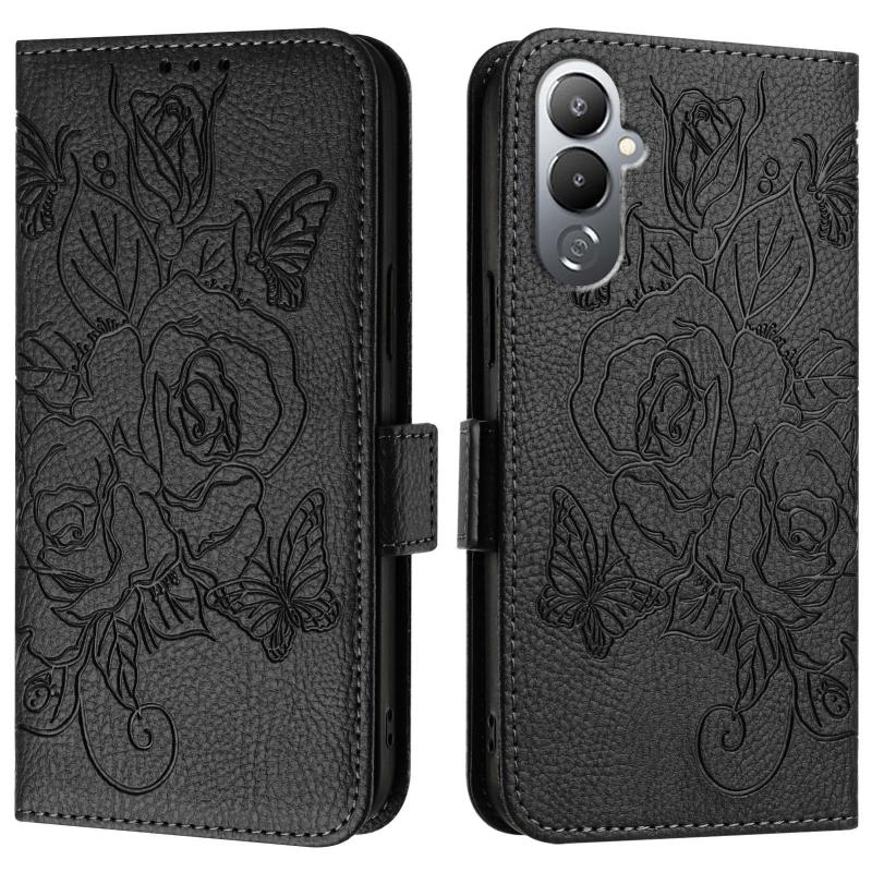 For Tecno Pova 4 Pro Embossed Rose RFID Anti-theft Leather Phone Case(Black)