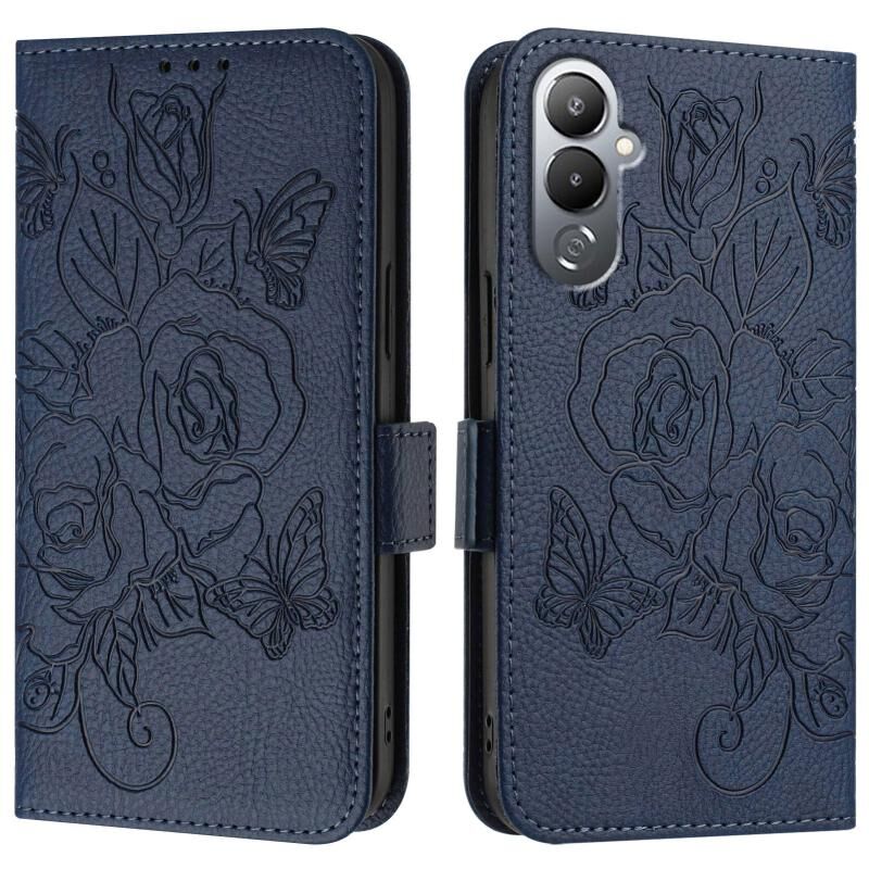 For Tecno Pova 4 Pro Embossed Rose RFID Anti-theft Leather Phone Case(Dark Blue)