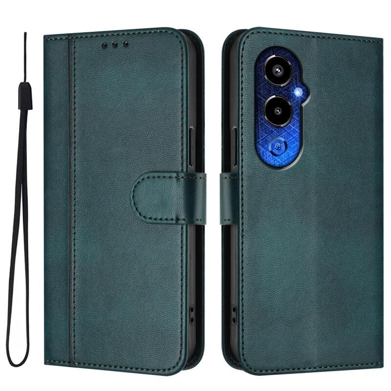 For Tecno Pova 4 Pro Line Splicing Buckle Retro Leather Phone Case(Dark Green)