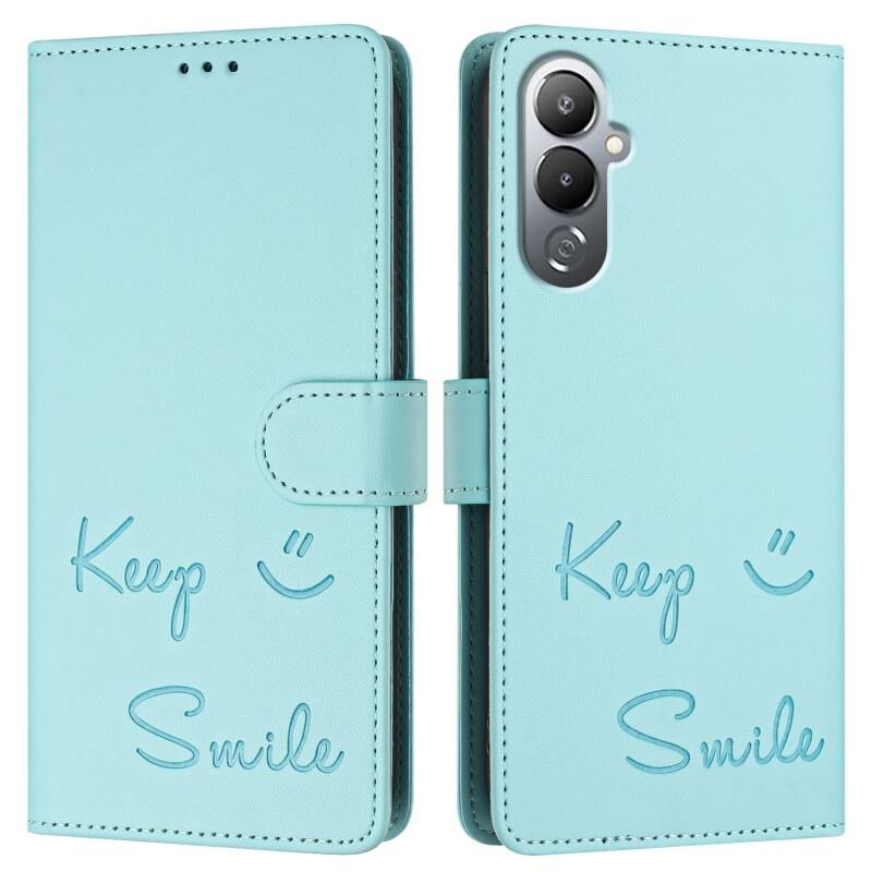 For Tecno Pova 4 Pro Smile Embossing RFID Leather Phone Case(Mint Green)