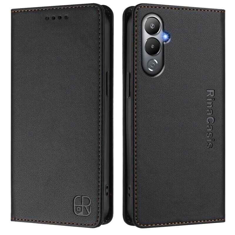 For Tecno Pova 4 RC01 Dual-Folded Magnetic Suction RFID Leather Phone Case(Black)