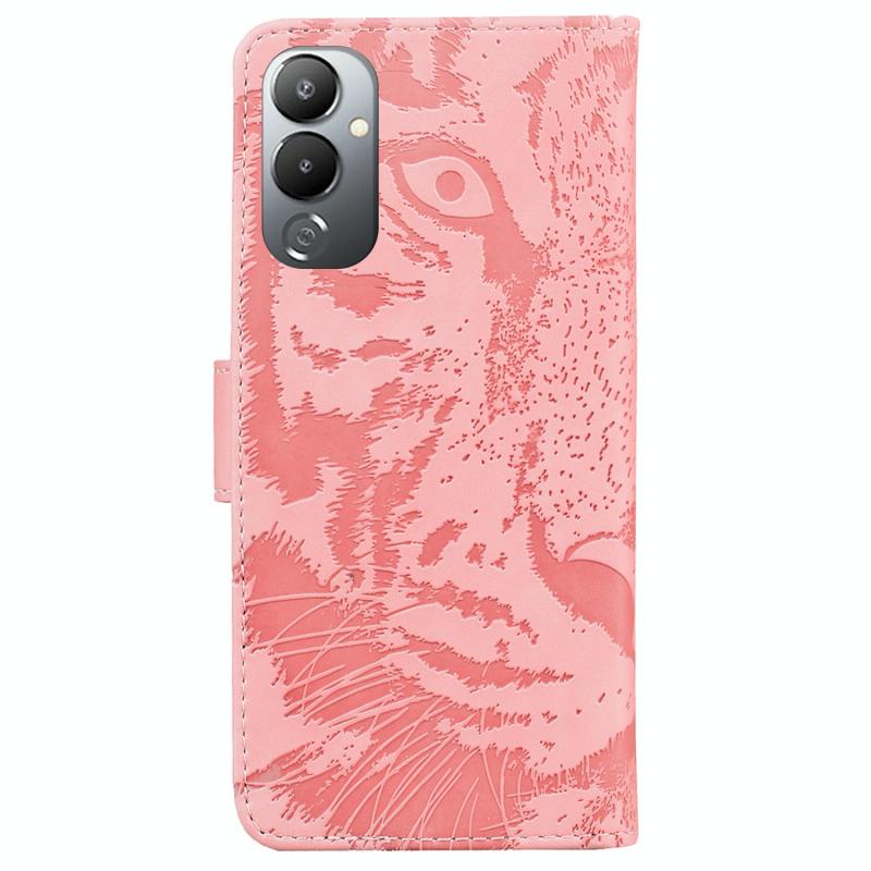 Θήκη τηλεφώνου Tecno Pova 4 με ανάγλυφο σχέδιο τίγρης και δέρμα (Ροζ)