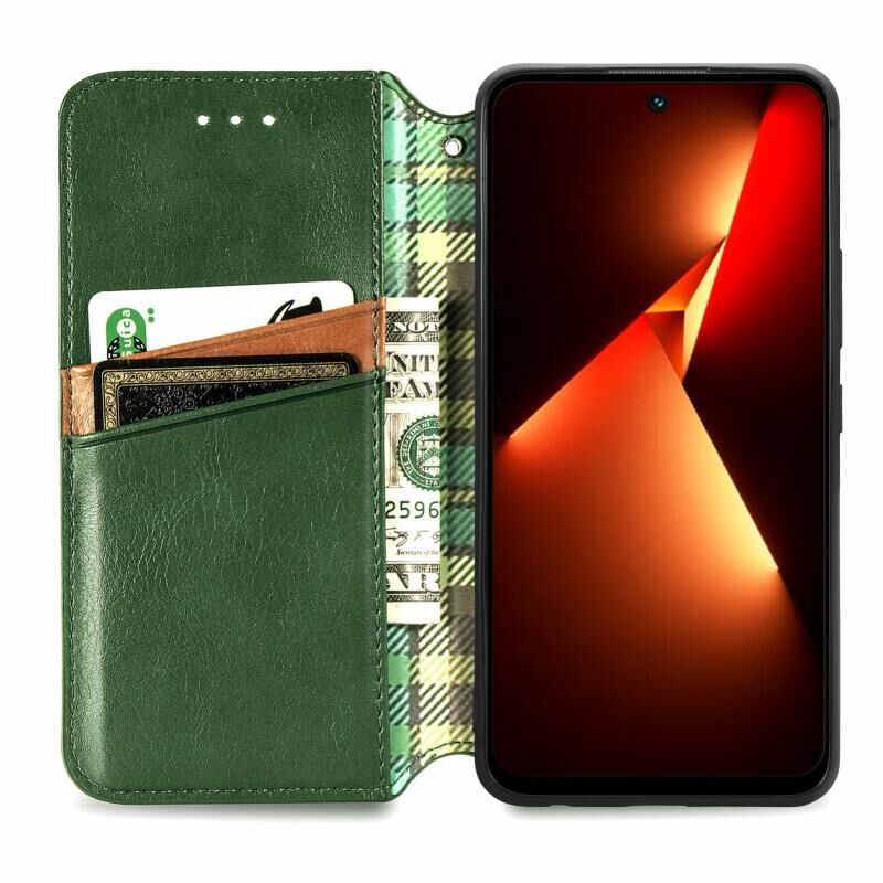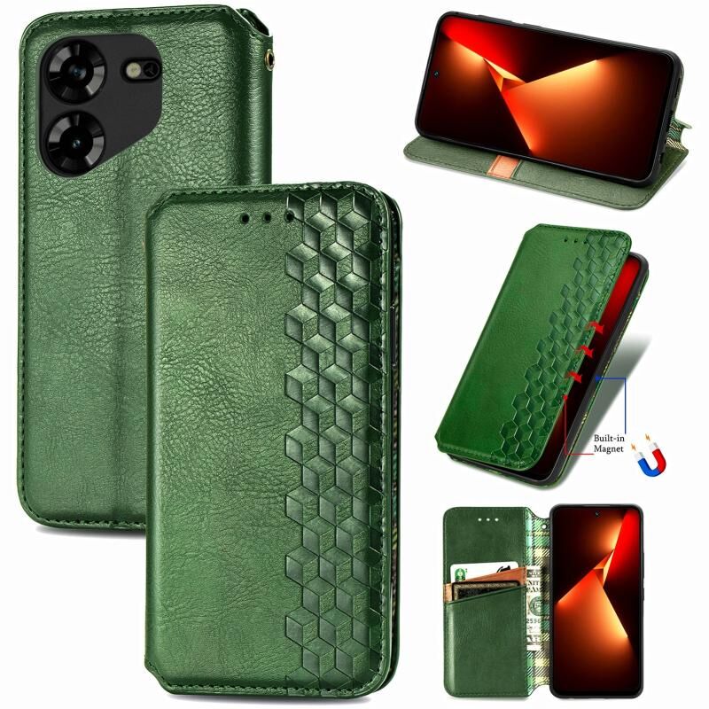 Για Tecno Pova 5 4G Cubic Grid Πιεσμένο μαγνητικό δέρμα τηλέφωνο υπόθεση (πράσινο)