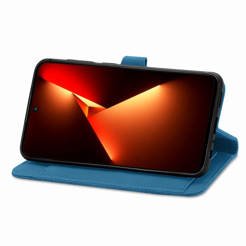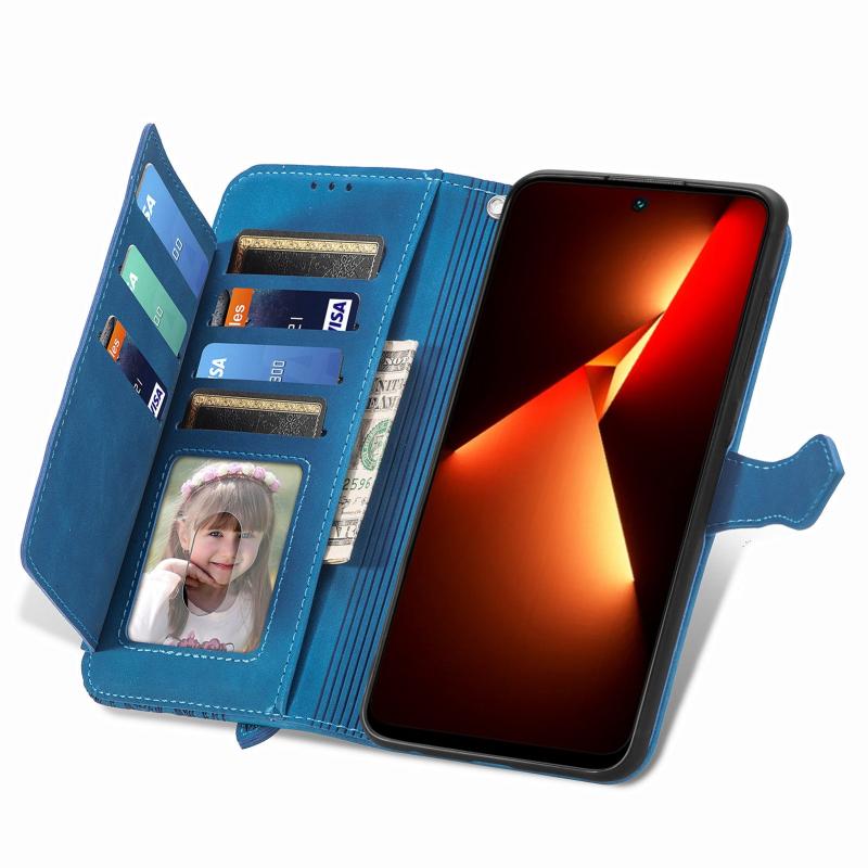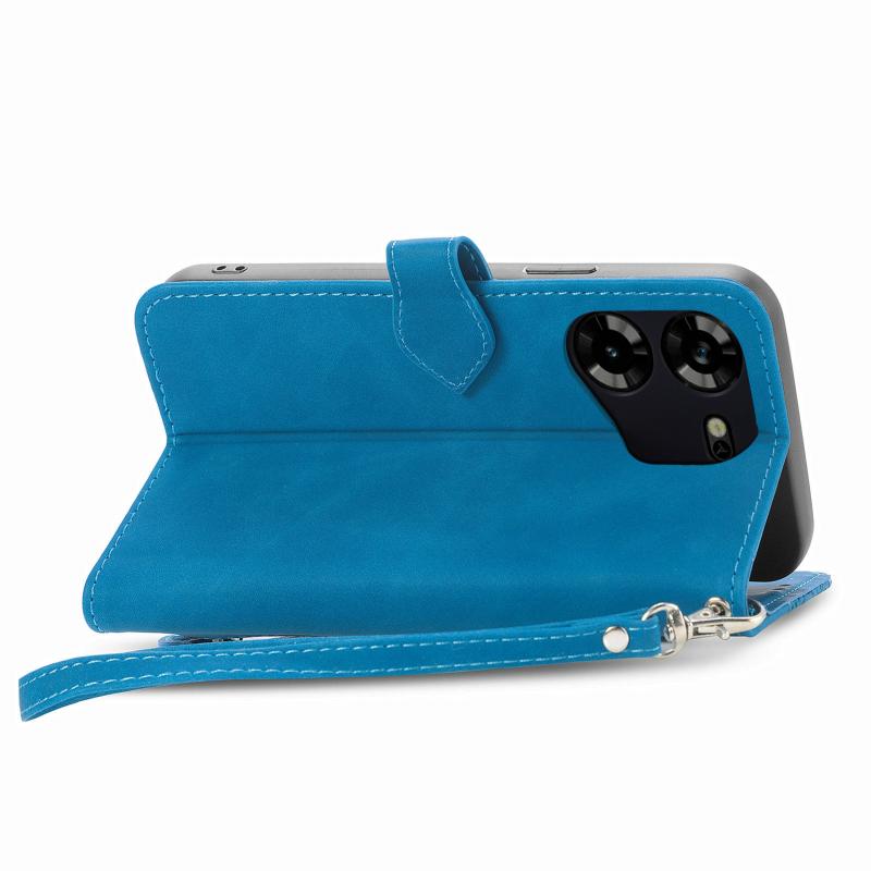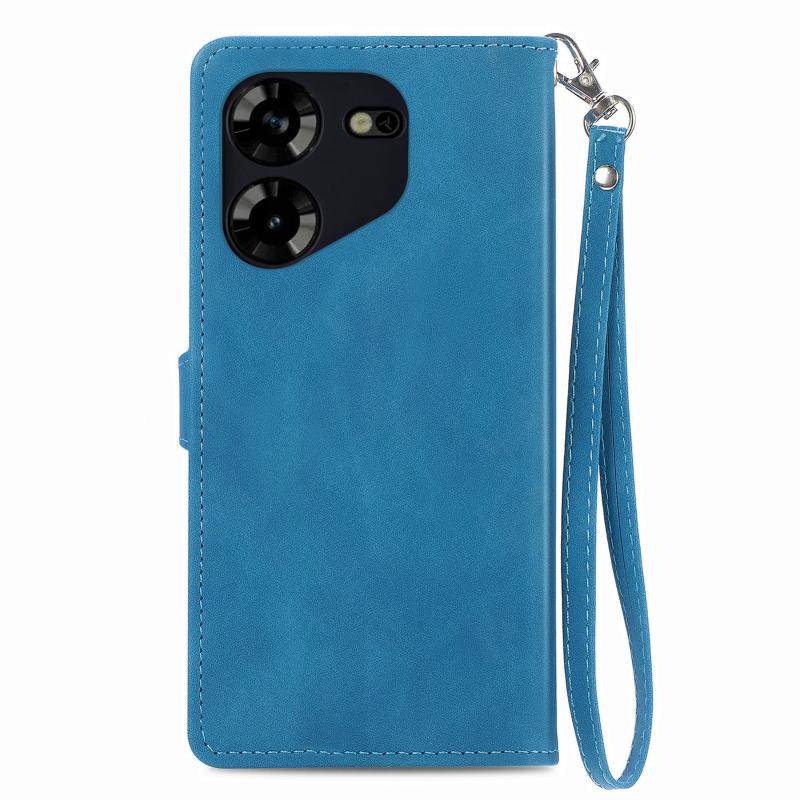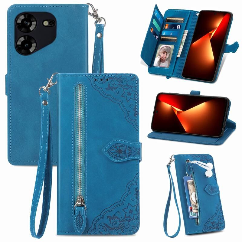 Θήκη Tecno Pova 5 4G Δερμάτινη με Ανάγλυφο Λουλούδι και Φερμουάρ (Μπλε)