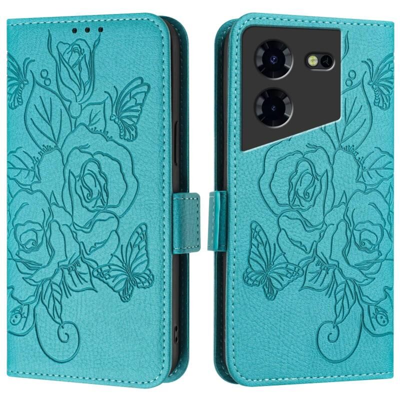 For Tecno Pova 5 4G Embossed Rose RFID Anti-theft Leather Phone Case(Light Blue)