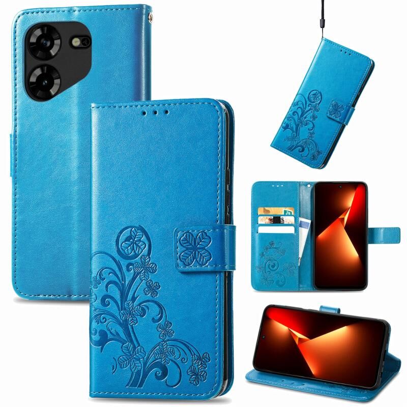 Για Tecno Pova 5 4G τετράφυλλο κούμπωμα ανάγλυφο πόρπη δερμάτινη θήκη τηλεφώνου (μπλε)