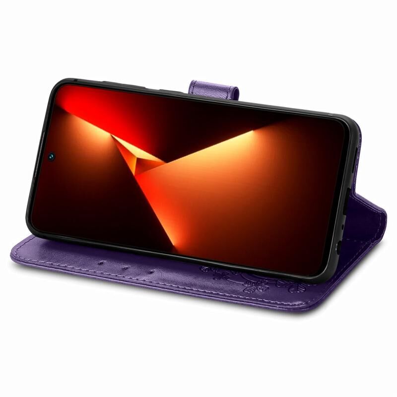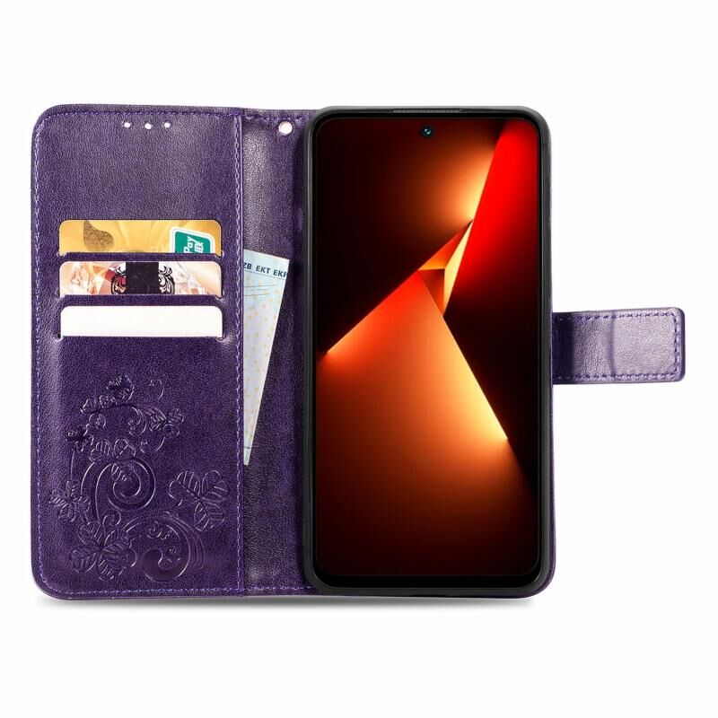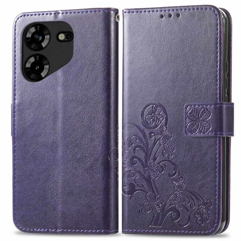 Για Tecno Pova 5 4G τετράφυλλο κούμπωμα ανάγλυφο πόρπη δερμάτινη θήκη τηλεφώνου (μωβ)