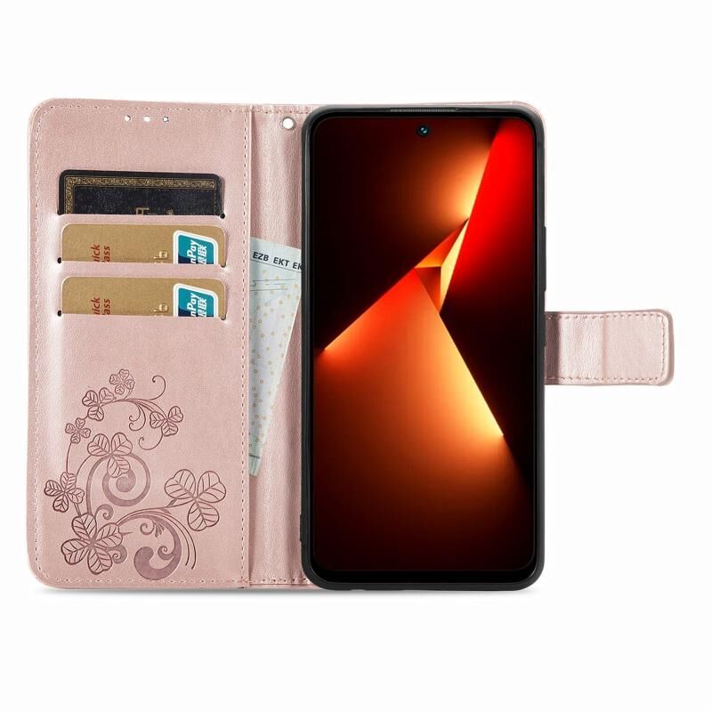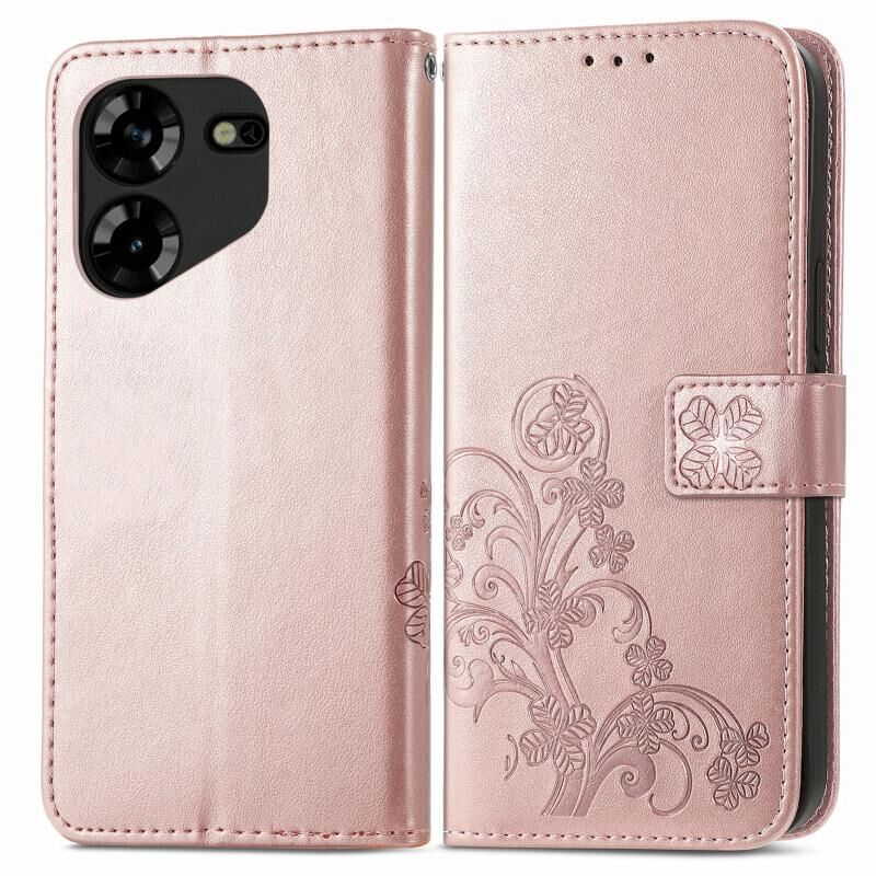 Για Tecno Pova 5 4G τετράφυλλο κούμπωμα ανάγλυφο αγκράφα δερμάτινη θήκη τηλεφώνου (Rose Gold)