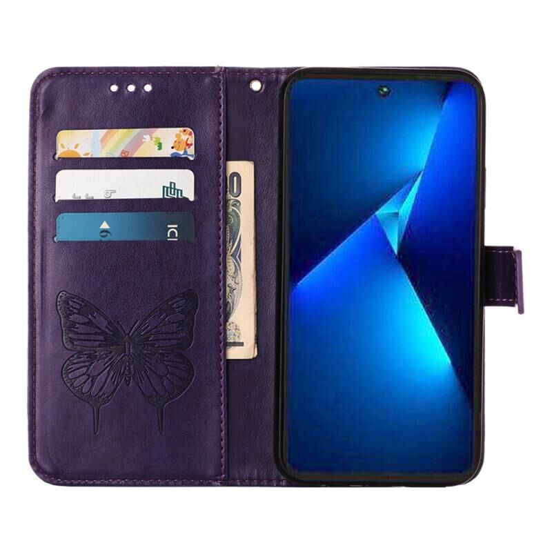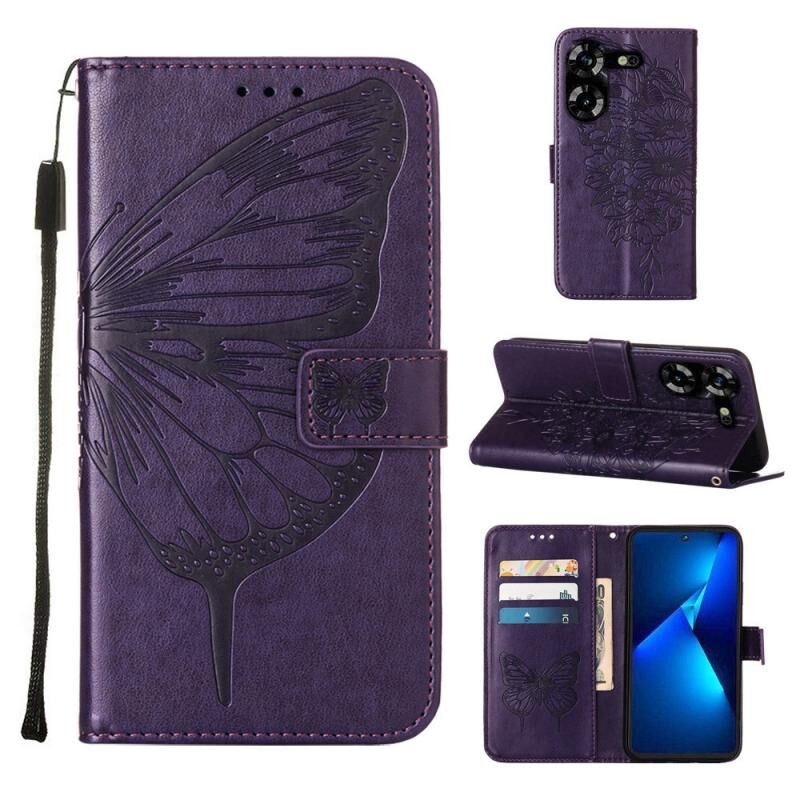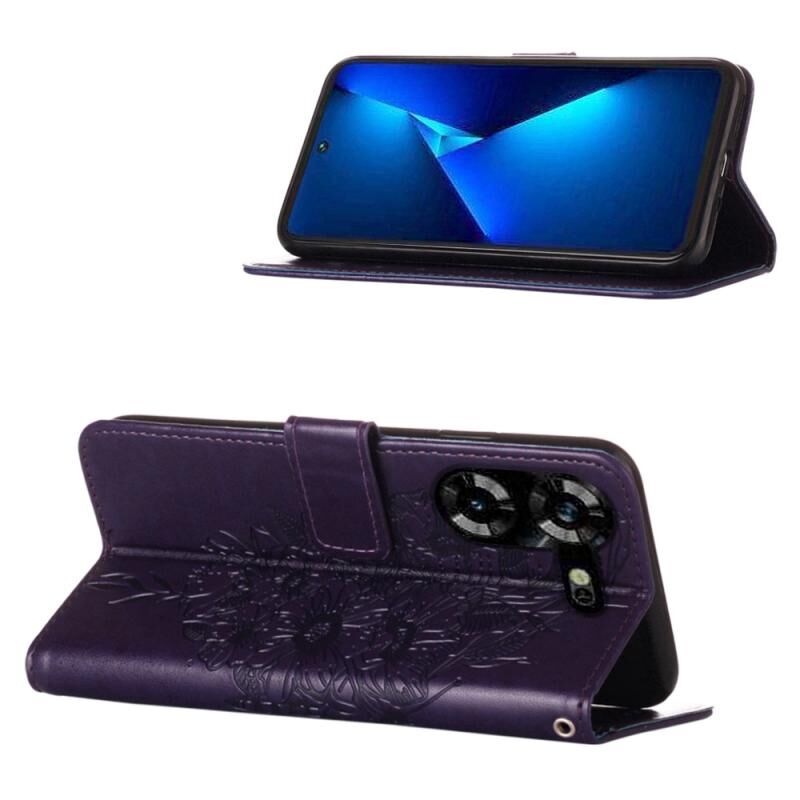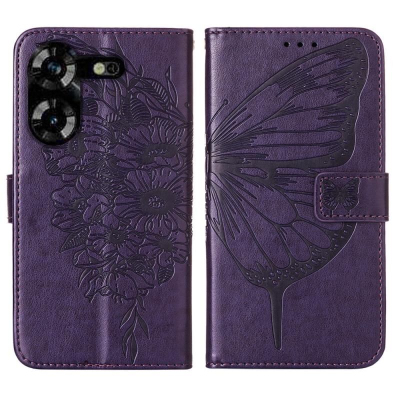 Θήκη τηλεφώνου από δέρμα με ανάγλυφο σχέδιο πεταλούδας για Tecno Pova 5 4G / LH7N (Σκούρο Μωβ)