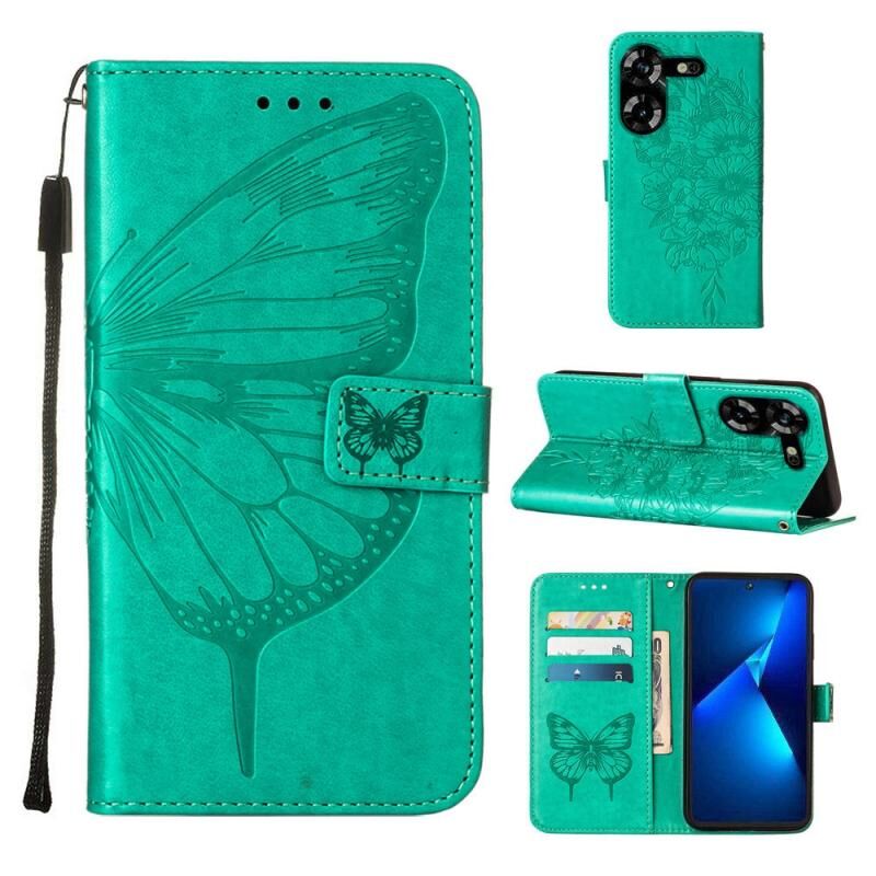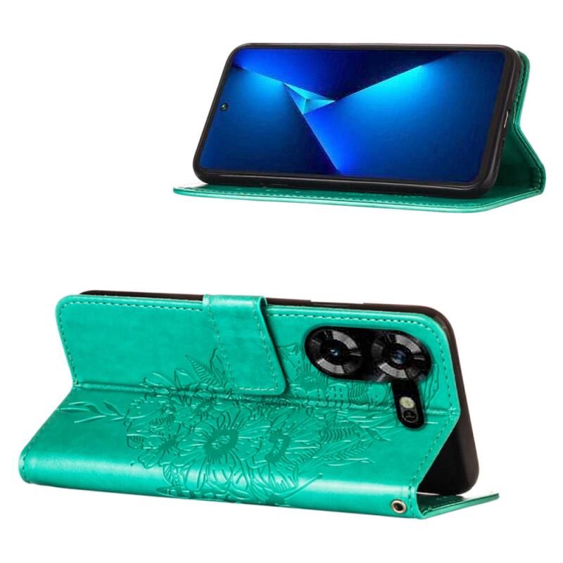 Θήκη τηλεφώνου από δέρμα με ανάγλυφο σχέδιο πεταλούδας για Tecno Pova 5 4G / LH7N (Σκούρο Μωβ)