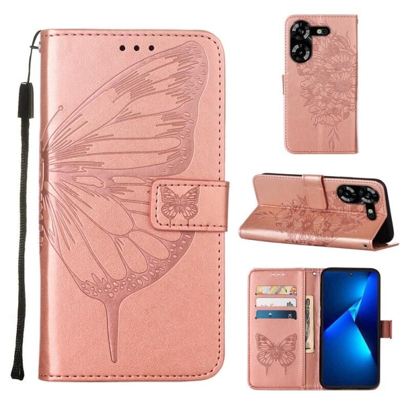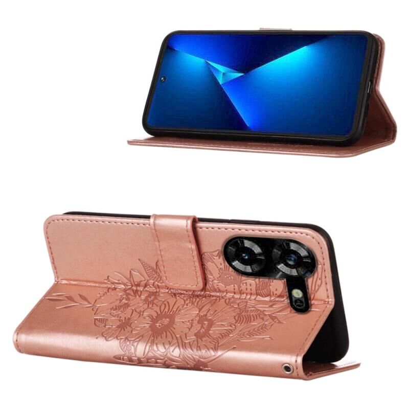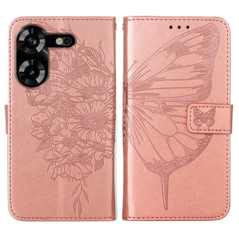 Θήκη τηλεφώνου από δέρμα με ανάγλυφο σχέδιο πεταλούδας για Tecno Pova 5 4G / LH7N (Σκούρο Μωβ)