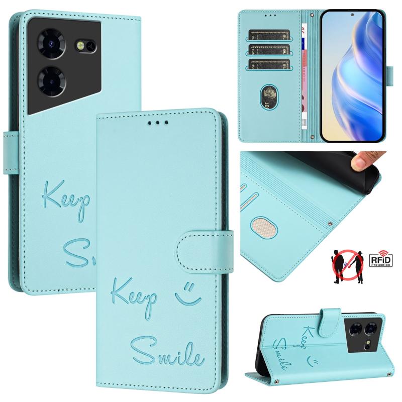 For Tecno Pova 5 4G Smile Embossing RFID Leather Phone Case(Mint Green)