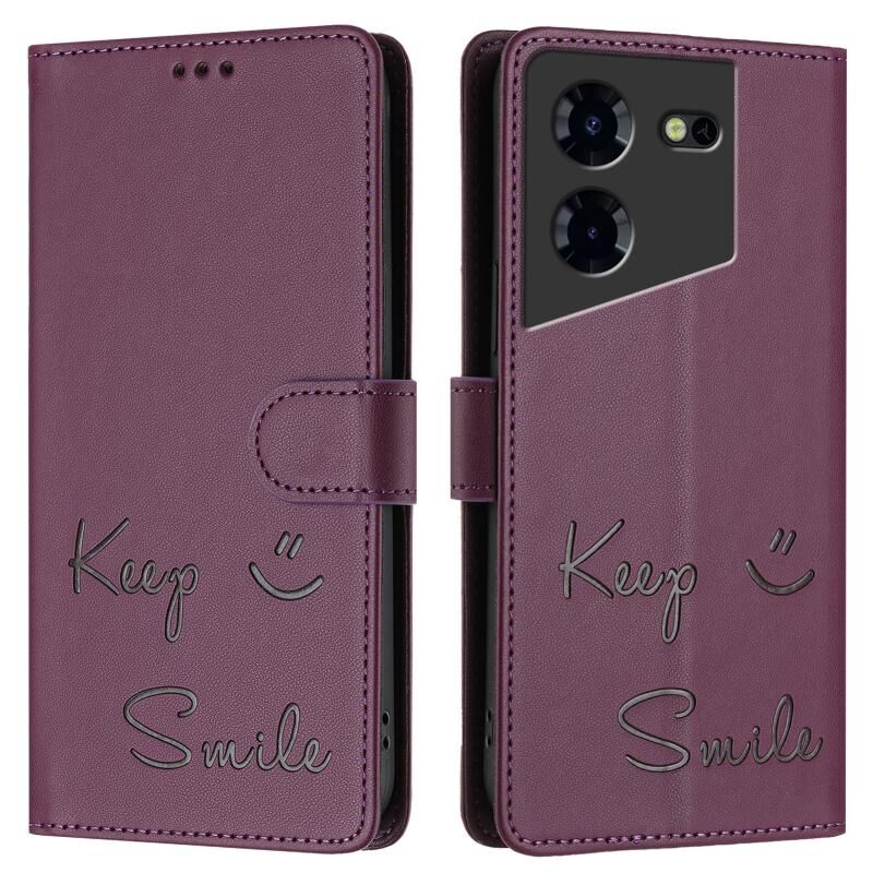 For Tecno Pova 5 4G Smile Embossing RFID Leather Phone Case(Violet)