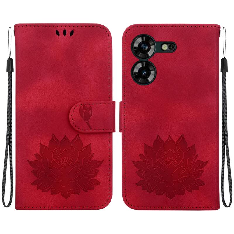 For Tecno Pova 5 Lotus Embossed Leather Phone Case(Red)