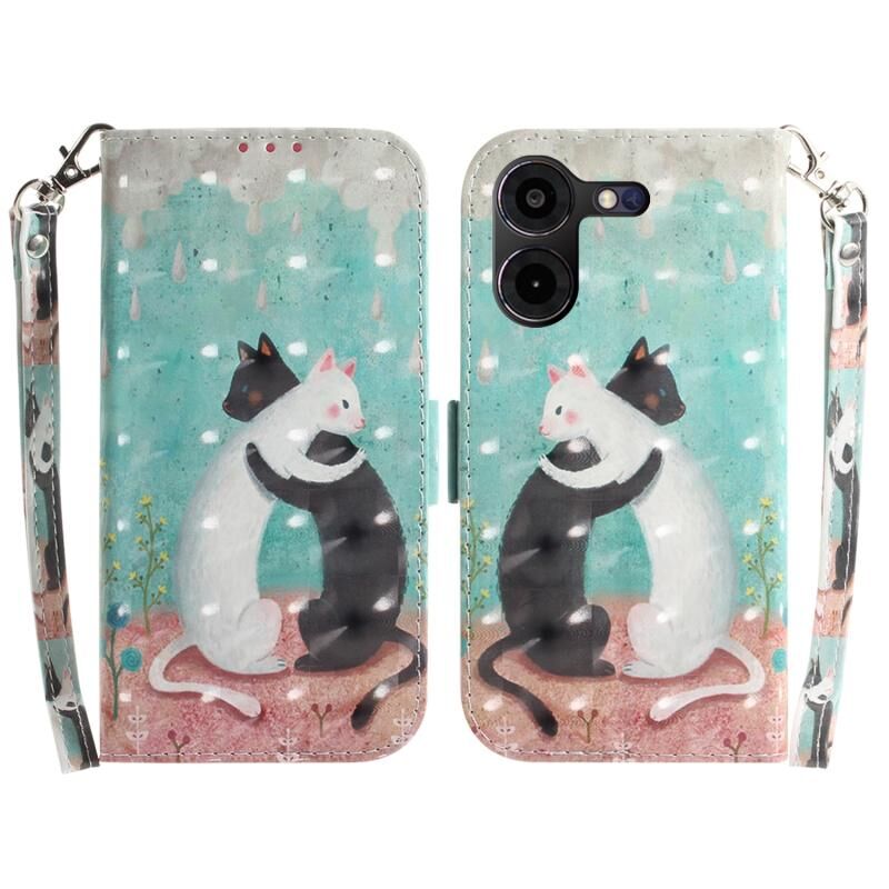 Θήκη τηλεφώνου δερμάτινη, οριζόντια, αναδιπλούμενη, με τρισδιάστατο χρωματιστό σχέδιο για Tecno Pova 5 Pro (Μαύρη Λευκή Γάτα)