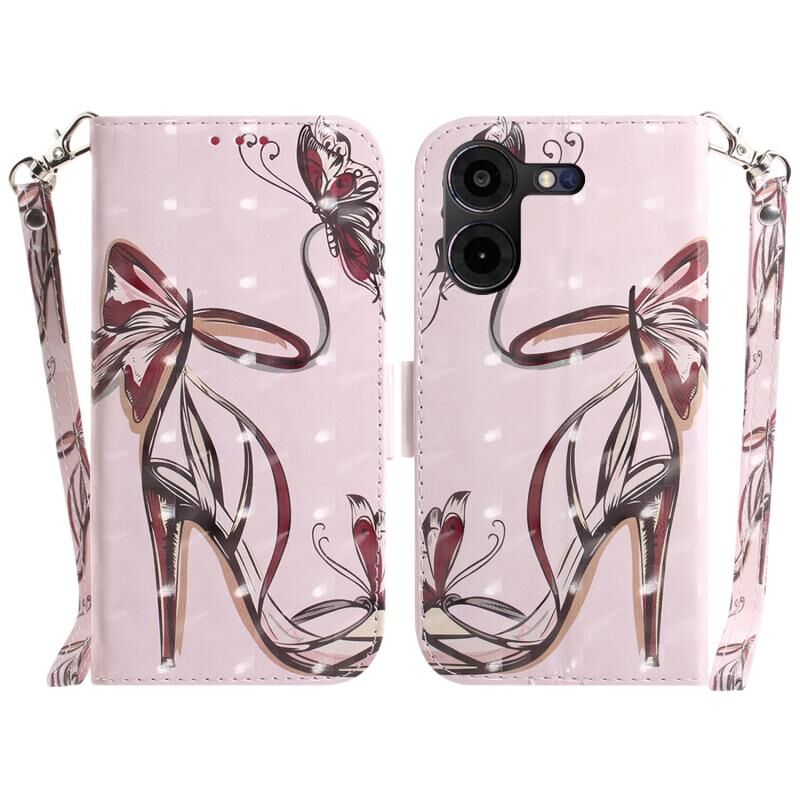 Θήκη τηλεφώνου δερμάτινη, οριζόντια, αναδιπλούμενη, 3D χρωματιστή για Tecno Pova 5 Pro (Πεταλούδα ψηλοτάκουνα)