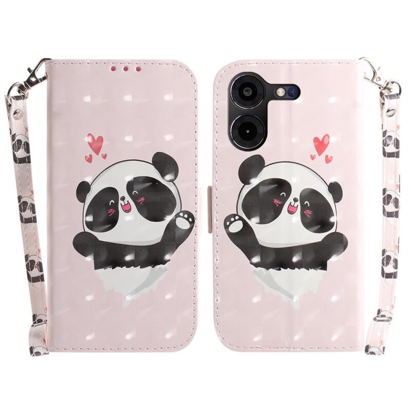 Θήκη τηλεφώνου δερμάτινη, οριζόντια, αναδιπλούμενη, με τρισδιάστατο χρωματιστό σχέδιο για Tecno Pova 5 Pro (Heart Panda)