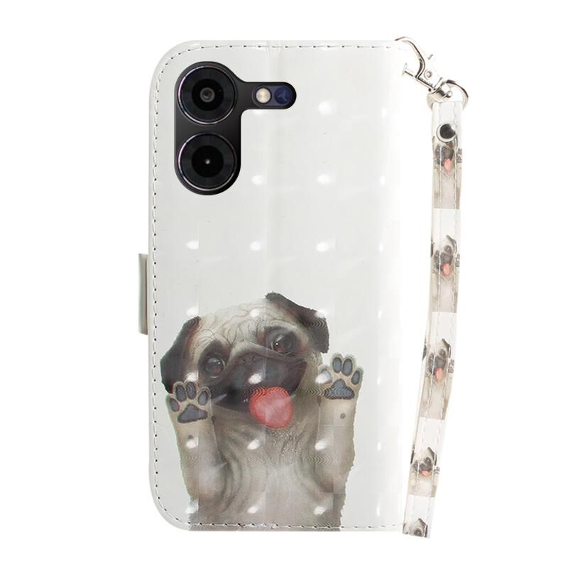 Θήκη τηλεφώνου δερμάτινη, οριζόντια, αναδιπλούμενη, με τρισδιάστατο χρωματιστό σχέδιο για Tecno Pova 5 Pro (Pug)